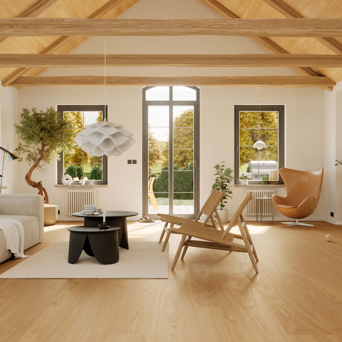 Norrlia je prirodan mat-lakirani učvršćeni drveni pod klasičnog švedskog dizajna koji u vaš dom donosi dašak prirode. Odlikuje se smirujućom nijansom Natural, kao i urednom i skladnom klasom Select. Ovaj proizvod klase 33 izrađen je od europskog hrasta s certifikatom Vijeća za nadzor šuma (FSC), a odlikuje se izuzetnom izdržljivošću te je idealan za prometne prostore kao što su hoteli, trgovine, uredi i kafići – ili ulaz u vaš dom. Mat-lakirana završna obrada pod čini jednostavnim za održavanje te ga istovremeno štiti od mrlja.