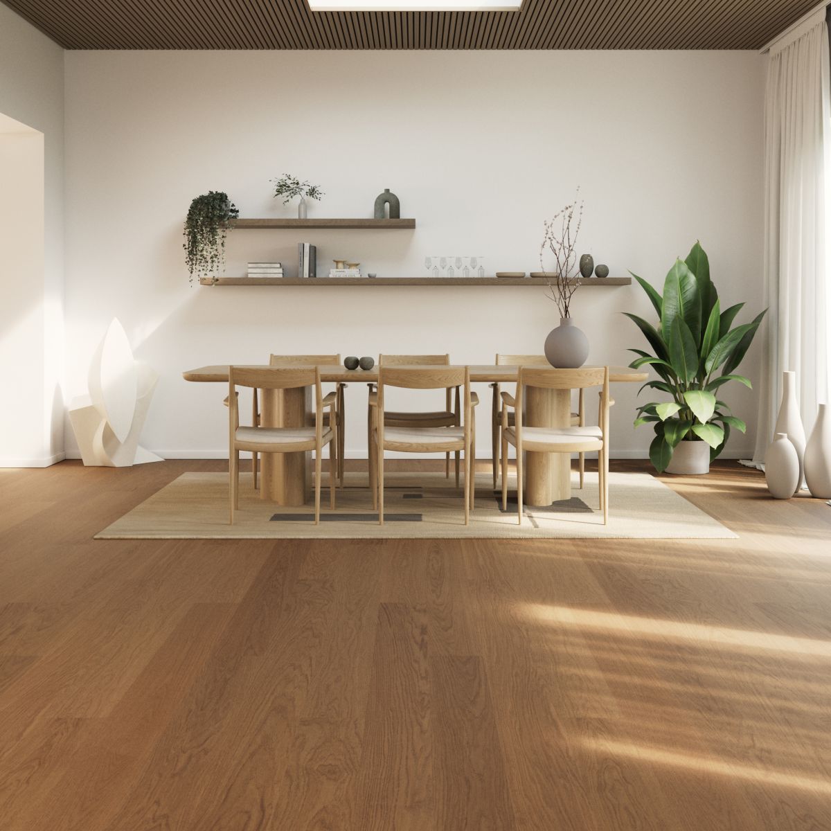 Venestad je mat-lakirani učvršćeni drveni pod bogata izgleda koji u vaš dom donosi autentičnu drvenu teksturu. Nijansa Terra Brown sinonim je za prirodu, a klasa Select podu daje uredan i skladan izgled. Ovaj proizvod klase 33 izrađen je od europskog hrasta s certifikatom Vijeća za nadzor šuma (FSC), a odlikuje se izuzetnom izdržljivošću te je idealan za prometne prostore kao što su hoteli, trgovine, uredi i kafići – ili prometne prostore u vašem domu. Mat-lakirana završna obrada pod čini jednostavnim za održavanje te ga istovremeno štiti od mrlja.