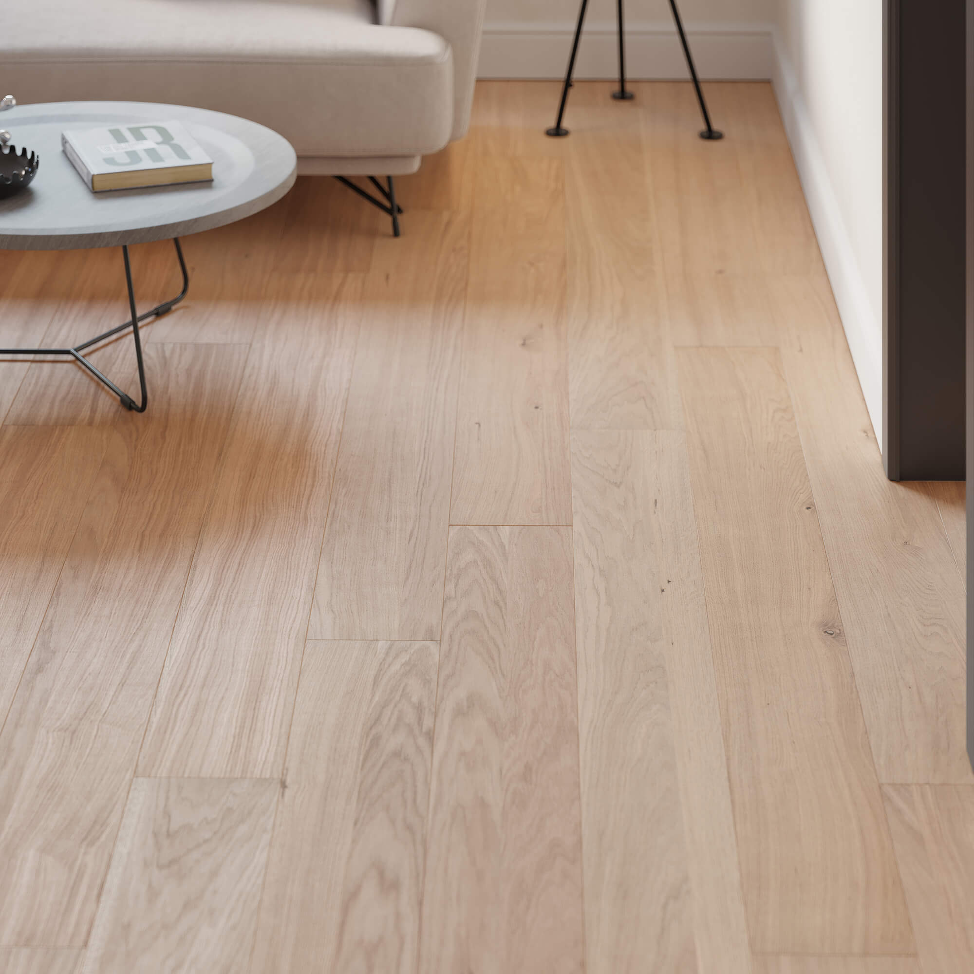 Vista White je svijetli učvršćeni drveni pod s mat lak površinskom obradom. Multi-strip klasa pruža prirodne varijacije u boji i vidljive čvorove, stvarajući živahno iskustvo podova.